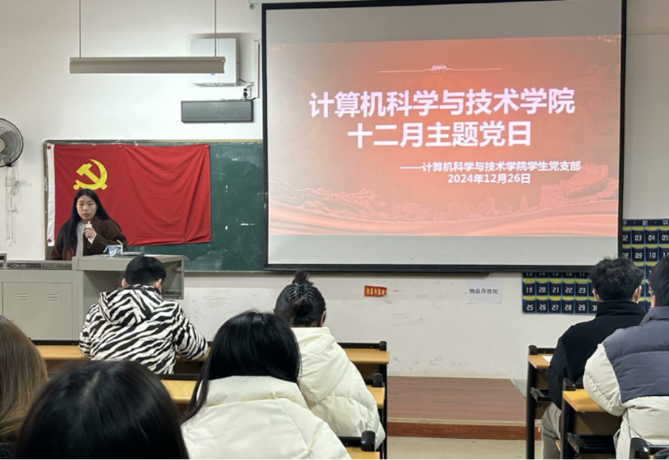 2024 年 12 月 26 日 12:00,计算机科学与技术学院学生第二党支部在 2314 教室开展十二月主题党日活动。本次活动由学生第一党支部书记邓畅主持,学生第二党支部全体党员、党务助理参与,学生第一党支部书记邓畅及陈雄伟同志在活动中承担重要角色。