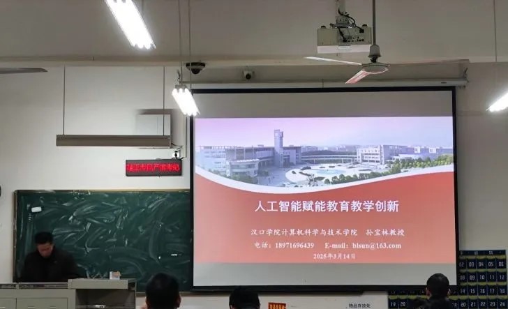 2025年3月14日15:30,孙宝林教授在第二教学楼2314教室为我院师生作了题为《人工智能赋能教育教学创新》的主题报告。