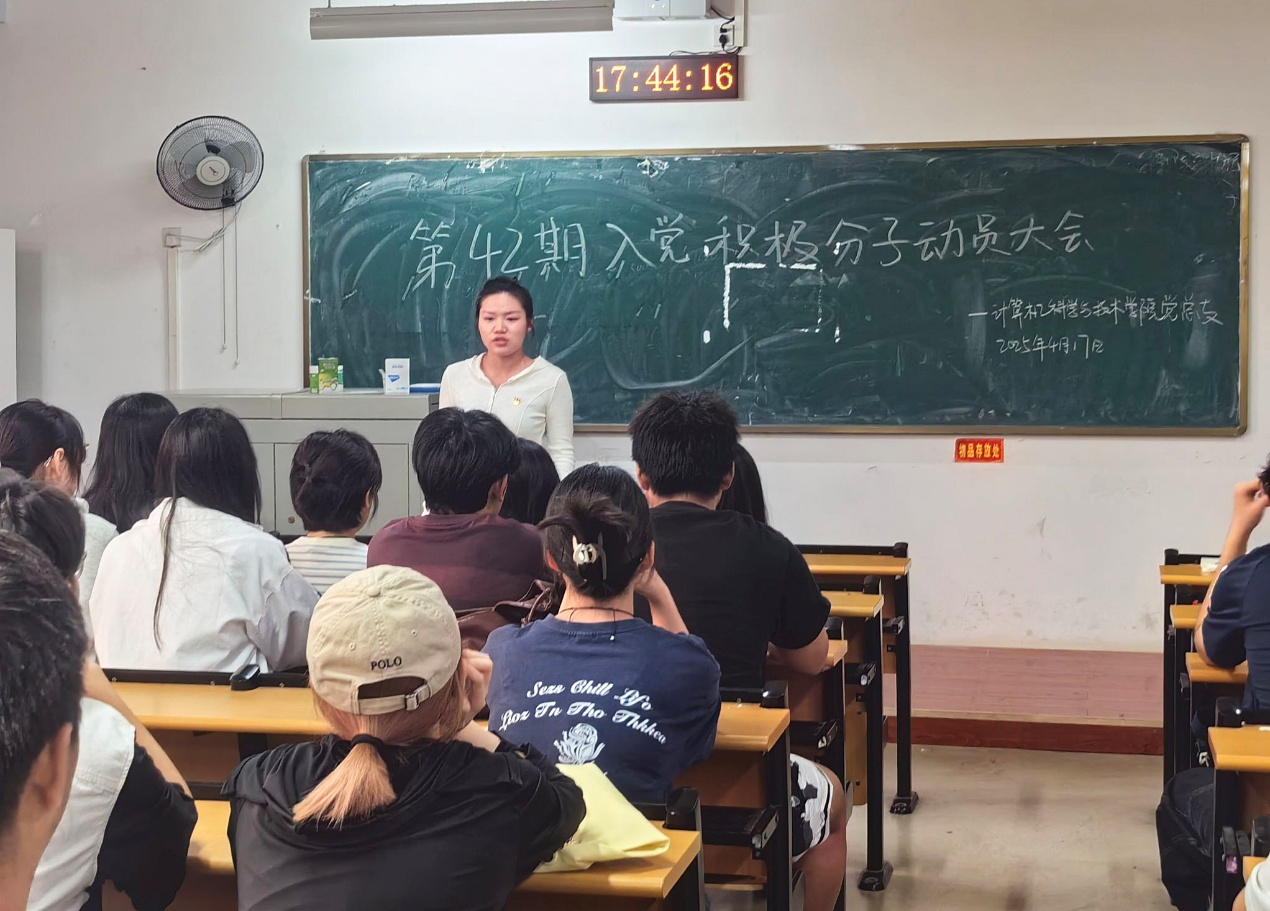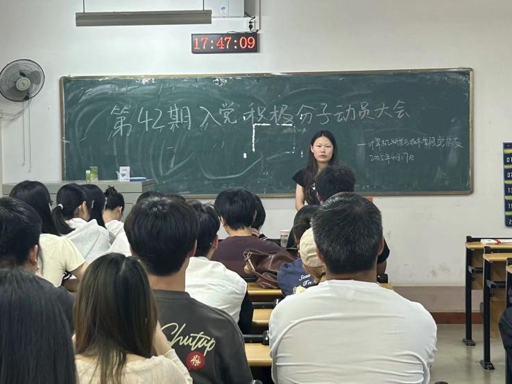 2025年4月17日17时40分,我院学生党支部在二号教学楼2318教室成功召开了第42期入党积极分子动员大会。本次会议由学生第二党支部书记邓萌同志主持,与会人员包括第42期全体入党积极分子及党务助理。会上,邓萌同志首先作动员讲话,指出党课培训是思想淬炼的关键阶段,要求全体积极分子端正入党动机,深耕理论学习,锤炼党性修养。随后,小组长曾雯雯就培训班的考勤、纪律、作业、考试及消息通知等具体事项进行了全面细致的讲解,强调学员们需严格遵守纪律,积极参与互动,做到学有所思、学有所成。此次动员大会旨在引导学员们校准入党初心,筑牢思想根基,为其早日成为一名合格的共产党员奠定坚实基础。会议在全体成员的配合下圆满结束,明确了培训要求,激发了学员们的学习热情。