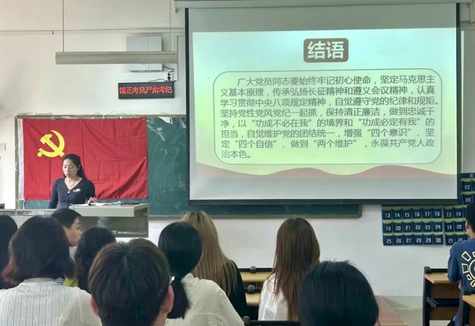 4月28日12:10,我院学生第一党支部在2306教室开展了以学习贯彻中央八项规定精神为主题的四月主题党日活动。活动由支部书记邓畅主持,支部全体党员及党务助理参加。
