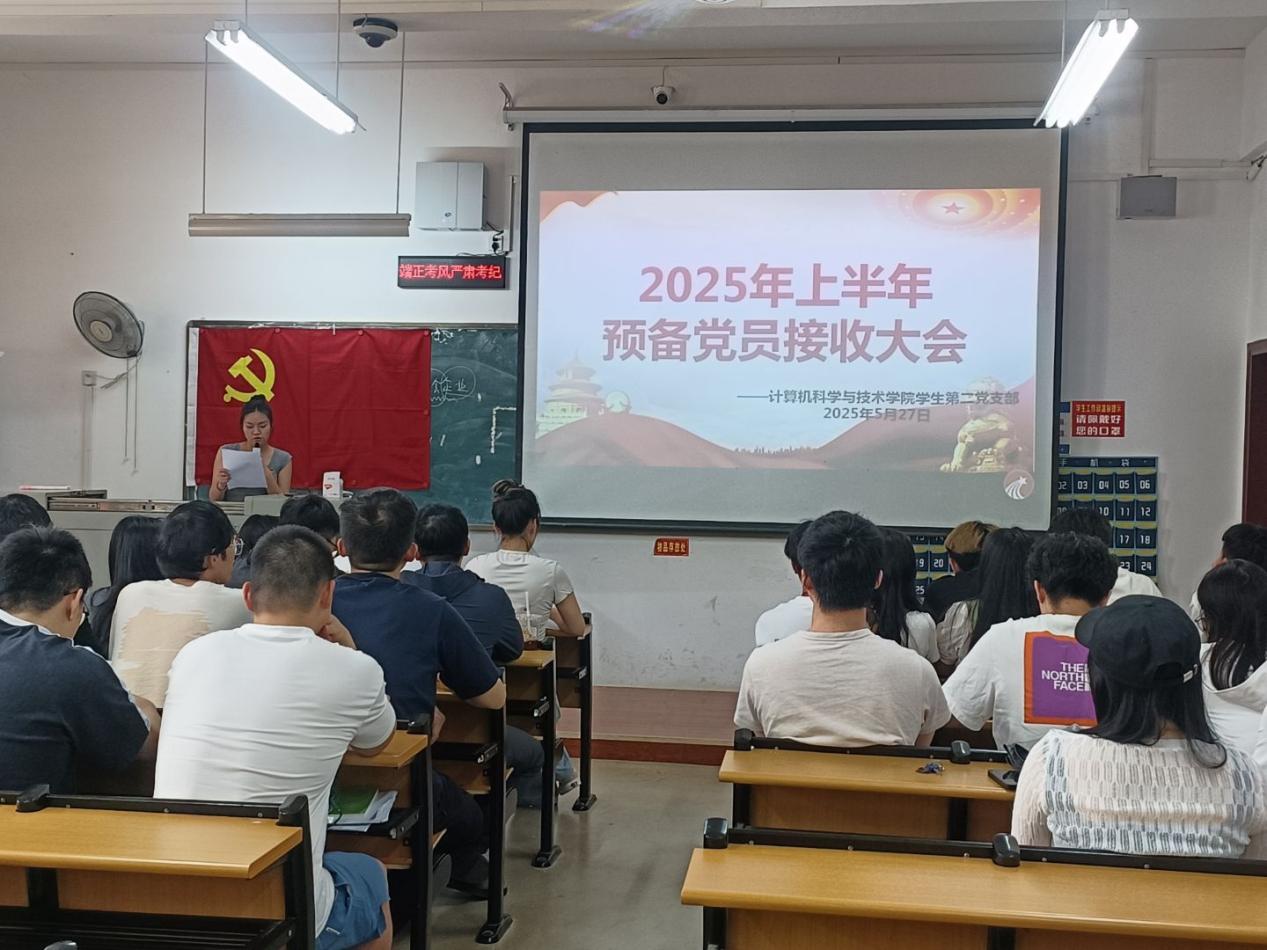 2025年5月27日,我院学生第二党支部在2318教室召开了2025年上半年预备党员接收大会。会议由党支部书记邓萌主持,支部全体党员及发展对象参加。