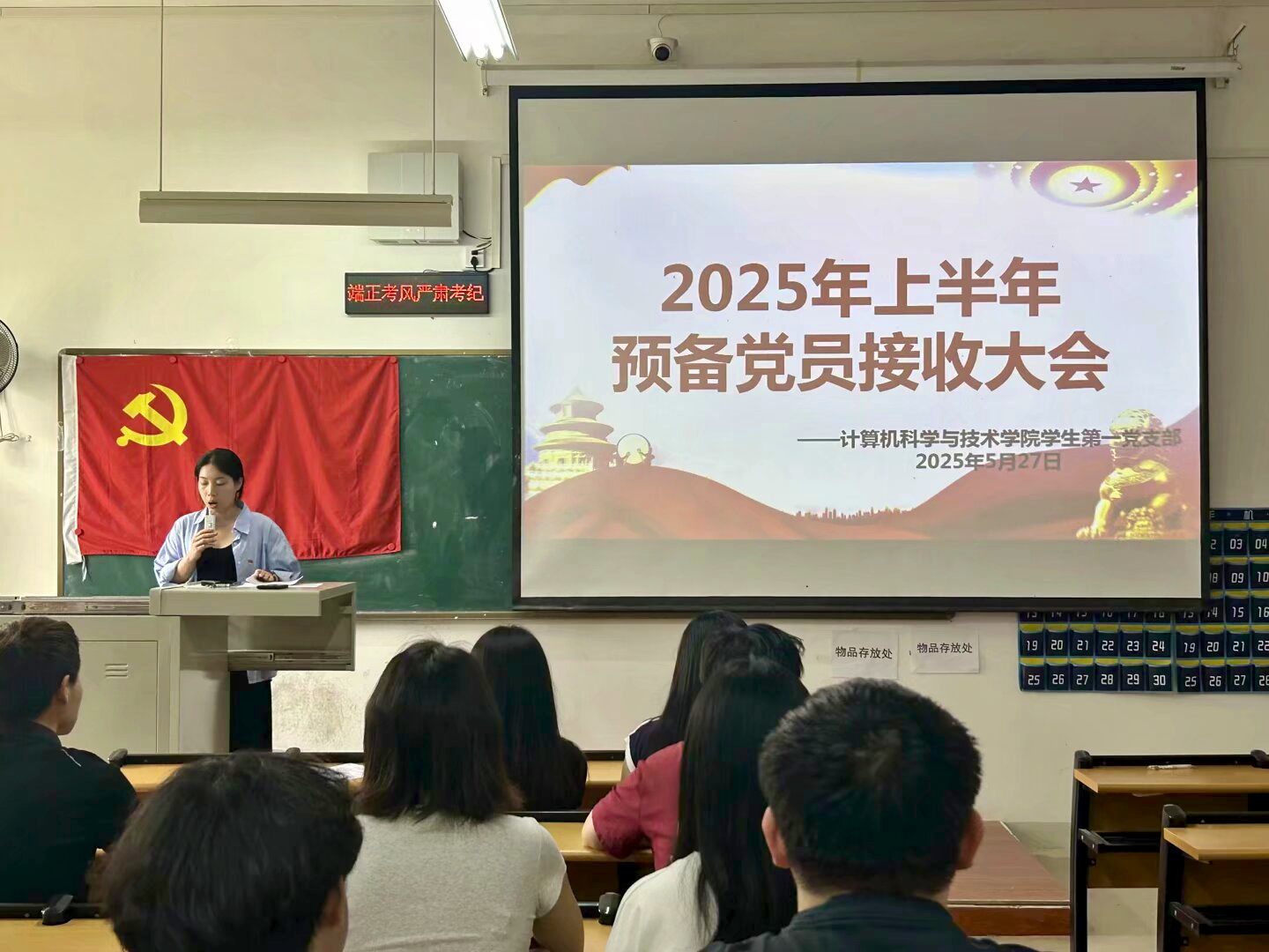 5月27日12:10,我院学生第一党支部在2314召开了2025年上半年预备党员接收大会。参加本次会议的有学生第一党支部书记邓畅、支部全体党员以及发展对象,本次会议由学生第一党支部书记邓畅主持。