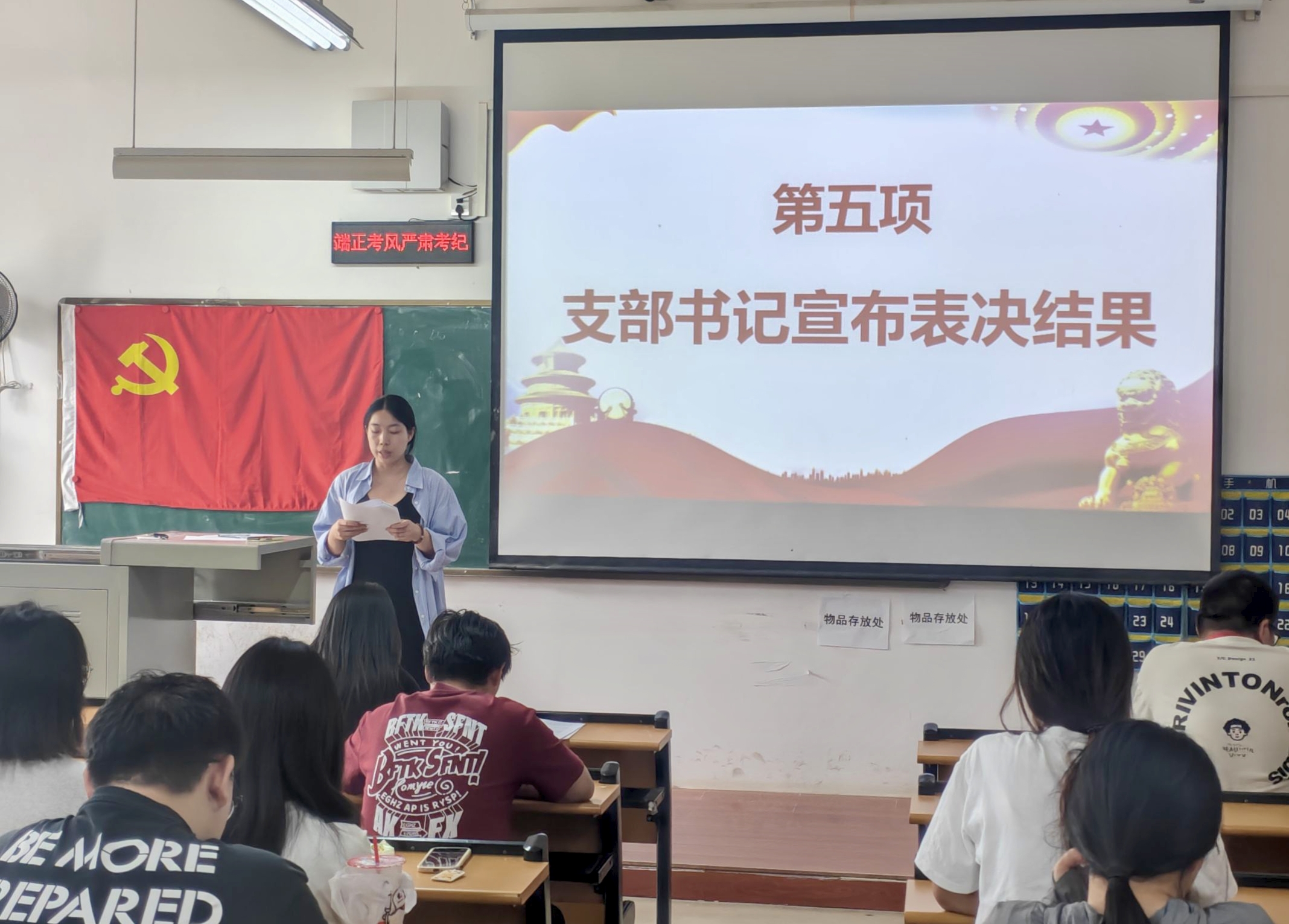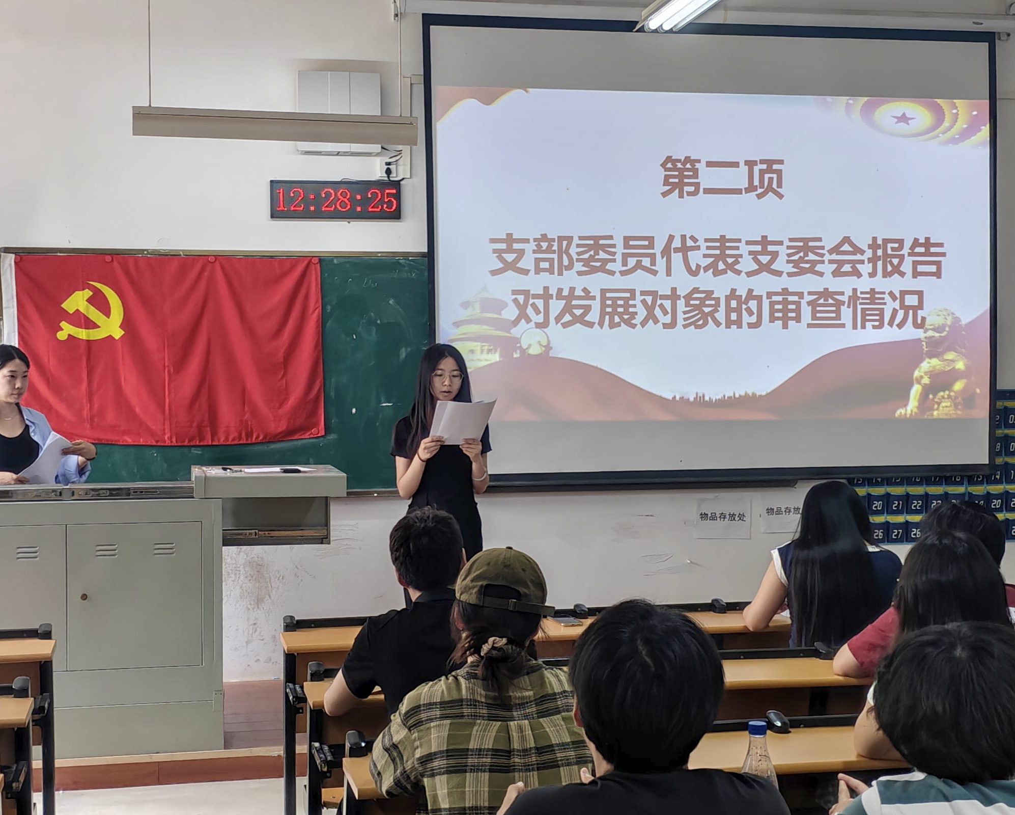 紧接着,支部委员韩思婕同志向大会详细报告了朱可欣等7名发展对象的政治审查情况,同时就7位发展对象的思想动态、学习工作表现等情况进行介绍,并且对其能否入党成为预备党员表明意见。