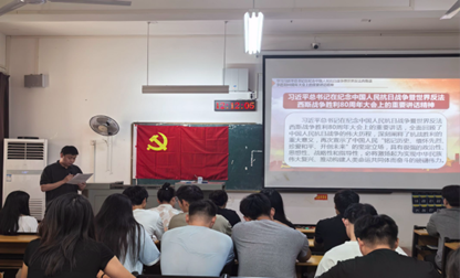 2025年9月17日中午12:00,某学院学生第二党支部在第二教学楼2318教室成功举办了九月主题党日活动。活动由党支部书记邓萌同志主持,支部全体党员及党务助理参加。本次主题党日活动按照既定议程有序开展。在庄严肃穆的奏唱国歌和重温入党誓词仪式后,会议进入核心学习环节。邓萌同志首先带领全体党员深入学习了中央八项规定精神,强调党员要发挥先锋模范作用。随后,组织员陈霞同志领学了习近平总书记关于作风建设常态化长效化的重要论述。会议还组织学习了新时代党的治藏方略、抗战胜利80周年重要讲话精神以及湖北省党的作风建设会议精神,由邓萌同志和张恒同志分别领学。最后,邓萌同志作总结发言,要求全体党员将学习成果转化为实际行动,践行初心使命。本次活动内容充实,程序规范,取得了预期效果,在全体参会人员的配合下圆满结束。
