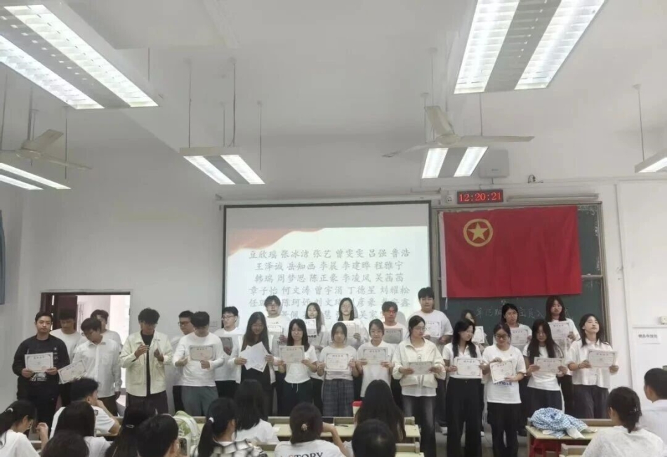 2025年9月24日中午12:10,我院在1105教室隆重举行了9月主题团日活动暨第13期发展团员入团仪式。参与人员包括各班团支部委员、第24期大学生骨干培训班结业团员以及第13期新发展的团员,大家佩戴团徽,精神饱满,共同见证了这一庄严时刻。