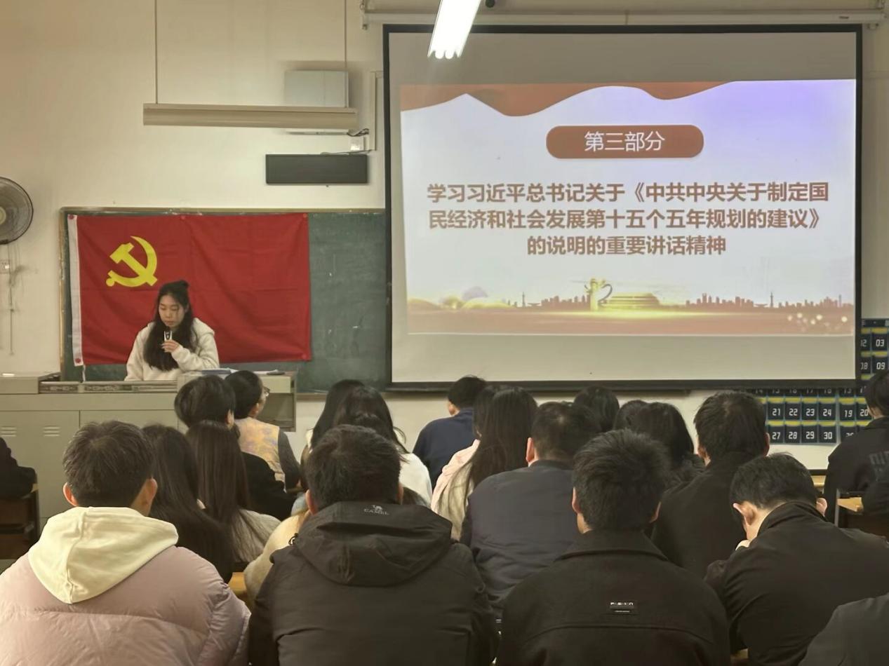 会议在奏唱国歌中开始,随后邓畅带领党员重温入党誓词,并通报了党费缴纳与到会情况。活动中,邓畅领学了《习近平总书记在广州考察时的重要讲话内容》,强调要严守纪律、务实干事,做全面从严治党的“践行者”。她还带领学习了“十五五”规划建议内容,鼓励党员在学业科研中求真务实、团结协作,将规划蓝图转化为青春实绩。